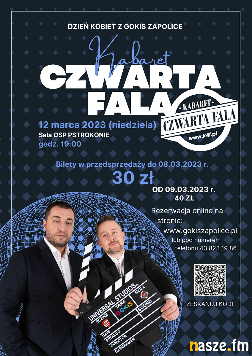 Gminny Ośrodek Kultury i Sportu w Zapolicach zaprasza w najbliższą niedzielę, 12 marca, na występ kabaretu Czwarta Fala. To kolejna propozycja kulturalna w naszym regionie organizowana z okazji Dnia Kobiet.