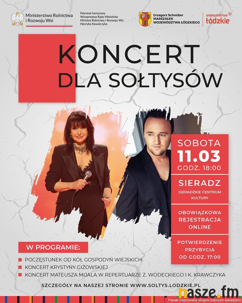 Już w najbliższą sobotę, 11 marca, marszałek Grzegorz Schreiber spotka się z sołtysami w Sieradzkim Centrum Kultury, gdzie na gości będzie czekał poczęstunek przygotowany przez Koła Gospodyń Wiejskich. Nie zabraknie również koncertów – wystąpią Mateusz Mijal, Krystyna Giżowska oraz Zespół Pieśni i Tańca Dzieci Doliny Grabi.