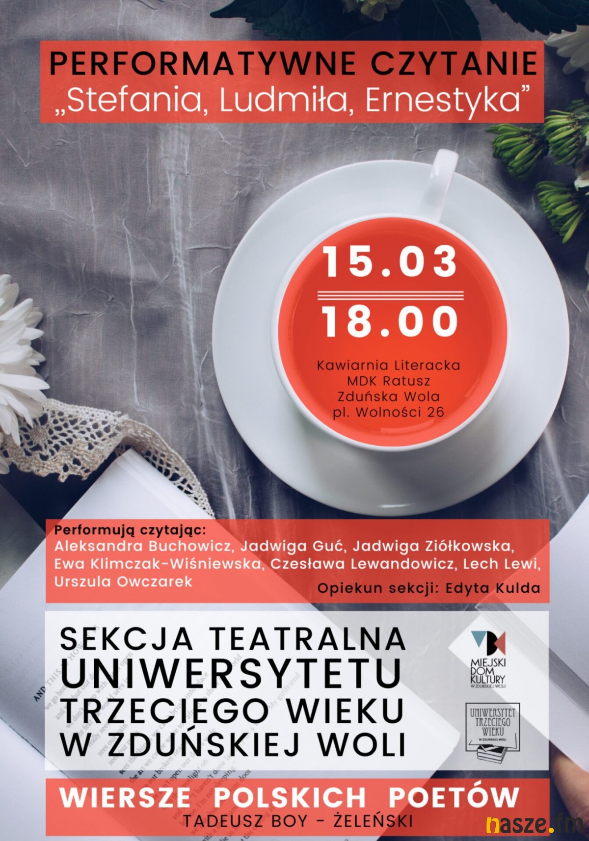 Sekcja Teatralna Uniwersytetu Trzeciego Wieku w Zduńskiej Woli zaprasza po raz pierwszy w tym roku na "Performatywne Czytanie". Tym razem będzie to spotkanie ze słówkami, słóweczkami Tadeusza Boya - Żeleńskiego.