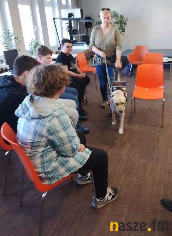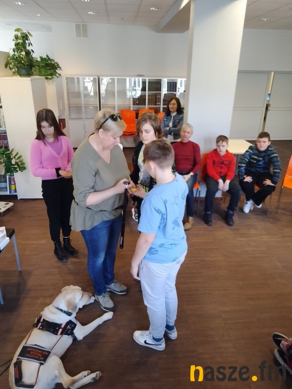 w Miejskiej Bibliotece Publicznej w Zduńskiej Woli odbyło się spotkanie pt. "Mój przyjaciel Drops". Bohaterami byli Pani Sylwia - osoba niewidoma oraz jej pies przewodnik - Drops. Uczestnikami byli uczniowie klasy 6 ze Szkoły Podstawowej nr 10.
