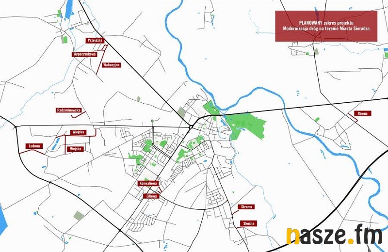 W planach sieradzkiego urzędu jest modernizacja nawierzchni kilkunastu ulic, m.in. Ludowej (odcinek od skrzyżowania z ul. Szlachecką w stronę wiaduktu), Miejskiej, Wiejskiej, Liliowej, Konwaliowej, Wakacyjnej, Wypoczynkowej czy Radziminowskiej.