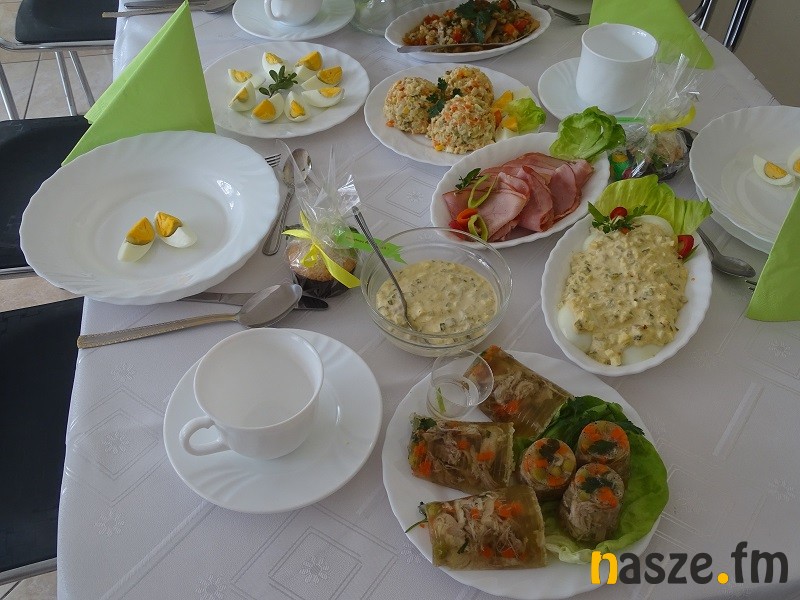 Na świątecznym stole królował dziś żurek, ale też kiełbasa, świąteczne jaja i ciasta. Na koniec każdy otrzymał też dyngusa, czyli wielkanocną paczkę. W ich przygotowaniu pomogło kilka fundacji.