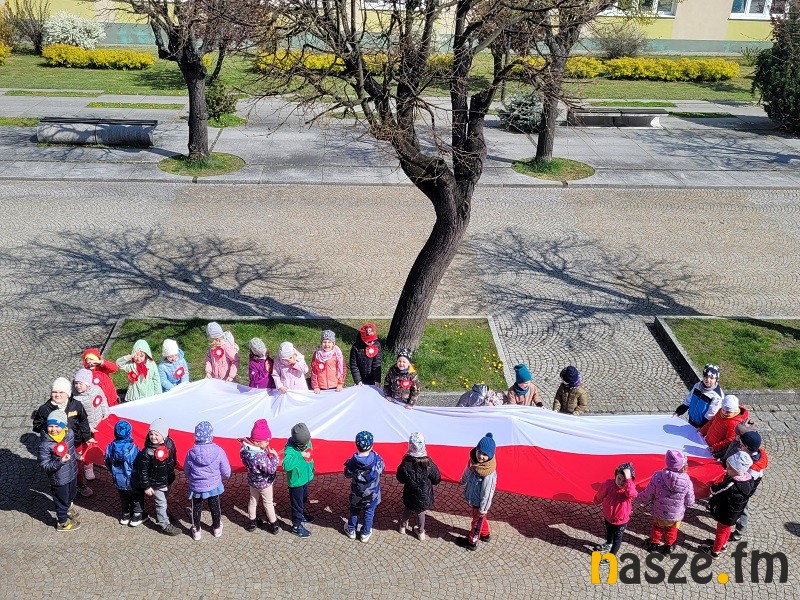 Przedszkole nr 2 im. "Krasnala Hałabały" w Sieradzu świętowało obchody z okazji zbliżających się świąt majowych. Nie zabrakło wierszyków, pięknych piosenek i wspólnego zdjęcia z flagą Polski.