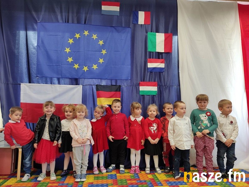 Dzieci z grupy Motylki zaprezentowały montaż muzyczno- słowny dotyczący Dnia Flagi, Konstytucji 3 Maja oraz na temat Unii Europejskiej. Odśpiewano hymn narodowy oraz odę do radości. Na zakończenie dzieci przed placówką przedszkolną rozłożyły flagę Polski.