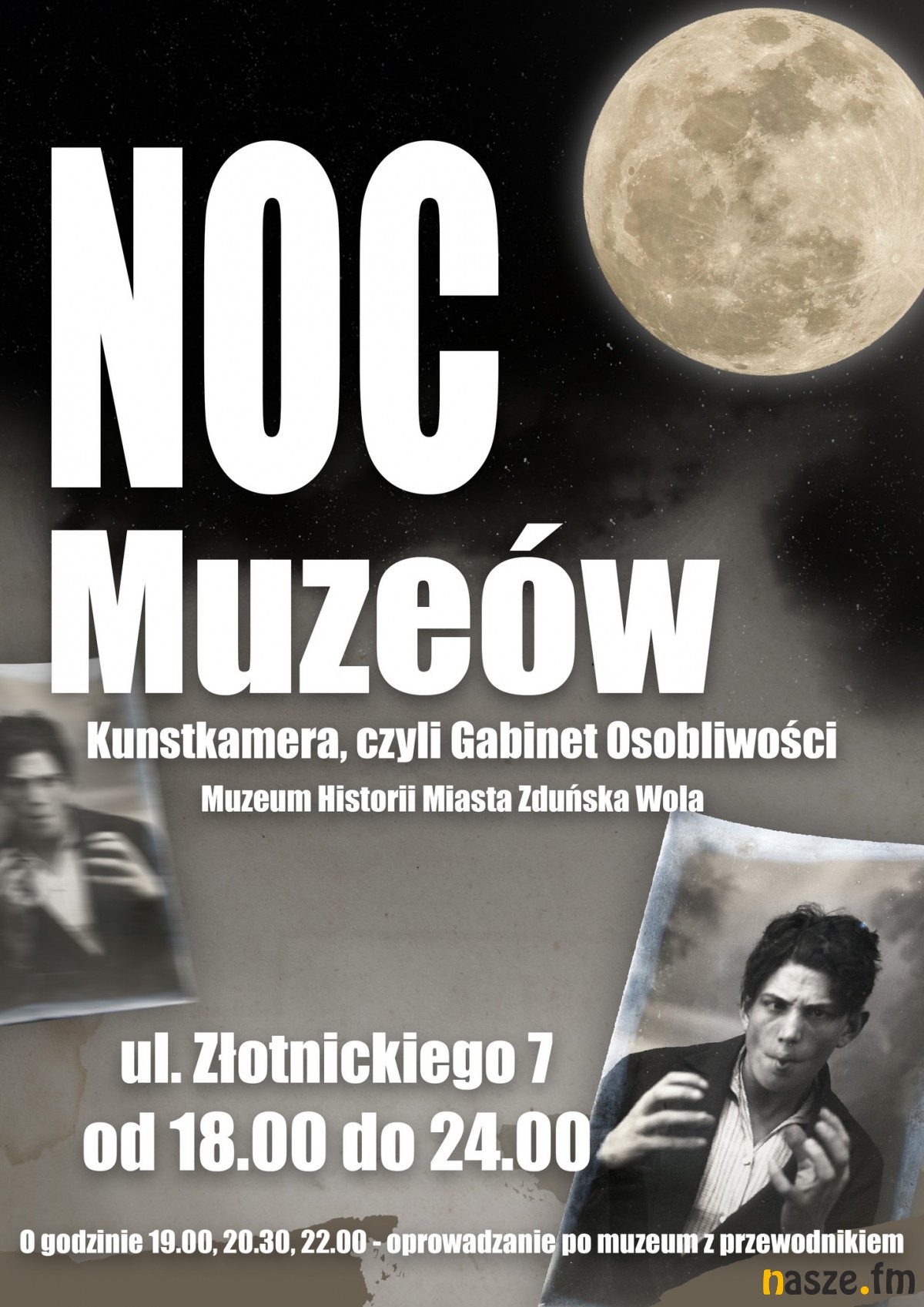 Od godziny 18.00 do 24.00 w Muzeum Historii Miasta Zduńska Wola przy ul. Złotnickiego 7 udostępniona do zwiedzania będzie wystawa „Kunstkamera, czyli Gabinet Osobliwości”. Prezentowane będą na niej najbardziej osobliwe, nigdy niepokazywane eksponaty muzealne, często niepasujące charakterem do wystroju wnętrz muzealnych i odbiegające od całości kolekcji. Ukryte głęboko w magazynach mające, magiczną moc przyciągania swoją niecodziennością i nieoczywistością.