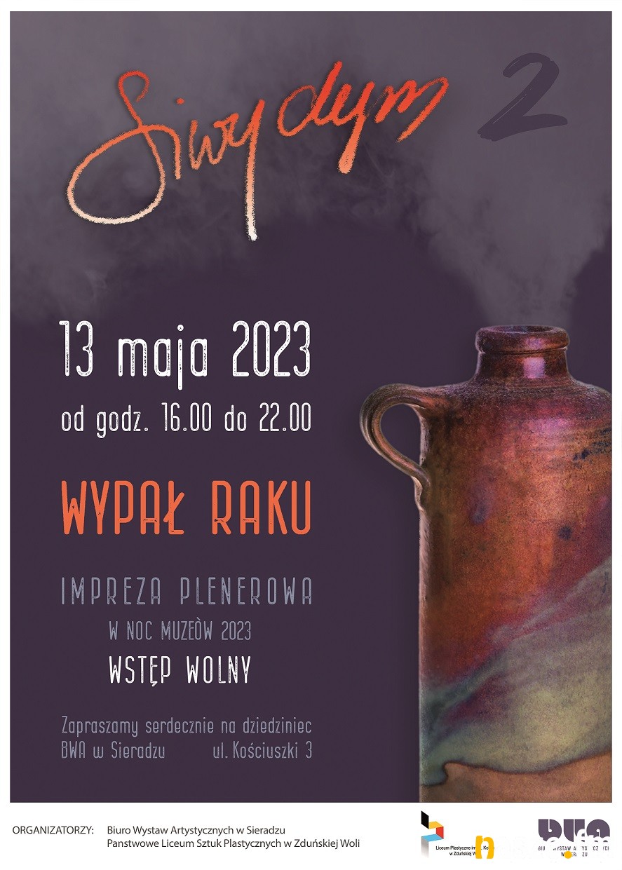 Atrakcji nie zabraknie również na dziedzińcu galerii. We współpracy z Państwowym Liceum Sztuk Plastycznych w Zduńskiej Woli, BWA zorganizuje pokaz wypału plenerowego ceramiki metodą raku. W podanych godzinach będzie też można zwiedzać pracownię ceramiczną, działającą przy BWA.
