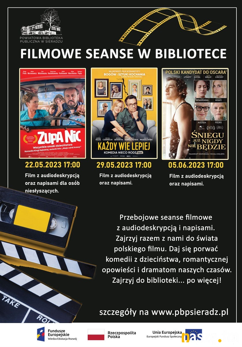 "Zupa nic", "Każdy wie lepiej" i "Śniegu już nigdy nie będzie" to filmy, które w poniedziałkowe popołudnia będzie można obejrzeć w bibliotece powiatowej w Sieradzu. Pierwsza projekcja już 22 maja.