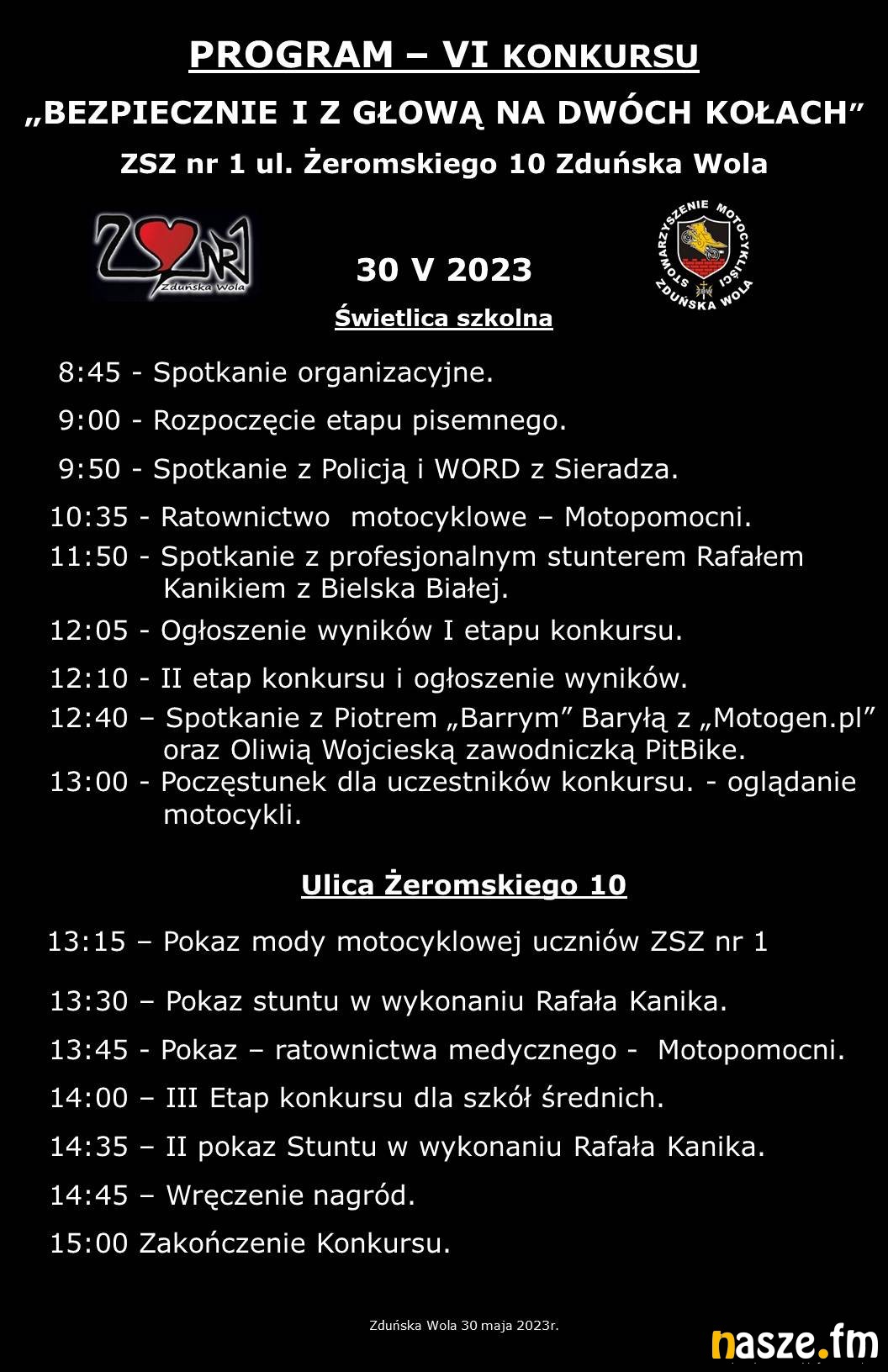 Po raz szósty w murach, ale nie tylko, Zespołu Szkół Zawodowych nr 1 w Zduńskiej Woli zorganizowany zostanie „Dzień motocykla” pod hasłem „Bezpiecznie i z głową na dwóch kołach”.