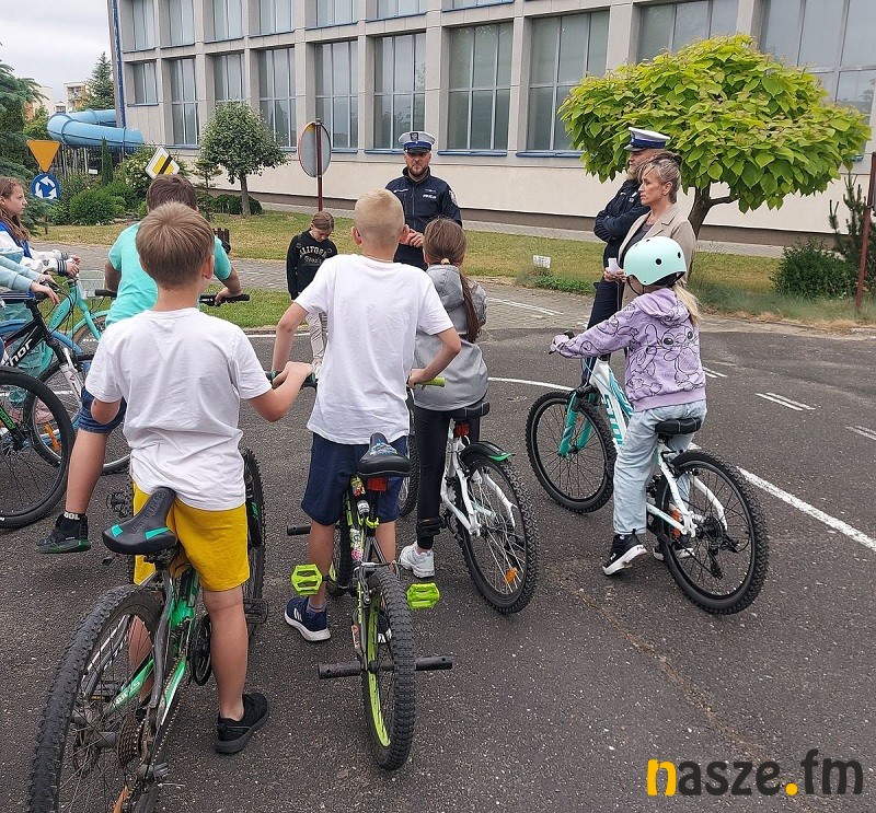 Spotkanie z uczniami było również bardzo dobrą okazją do przekazania przez policjantów niezwykle cennych zasad bezpiecznego poruszania się po drodze. Mundurowi przypomnieli dzieciom jakie są elementy obowiązkowego wyposażenia roweru. Podkreślali jak ważne jest używanie odblasków i korzystanie z kasków ochronnych. Zwrócono uwagę na nowe przepisy dotyczące pieszych oraz poruszania się hulajnogami elektrycznymi. Młodym cyklistom życzymy wielu bezpiecznie przejechanych kilometrów.