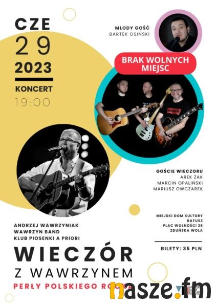 Perły polskiego rocka - to kolejna odsłona Wieczoru z Wawrzynem. Koncert zaplanowano na 29 czerwca w Miejskim Domu Kultury Ratusz w Zduńskiej Woli.