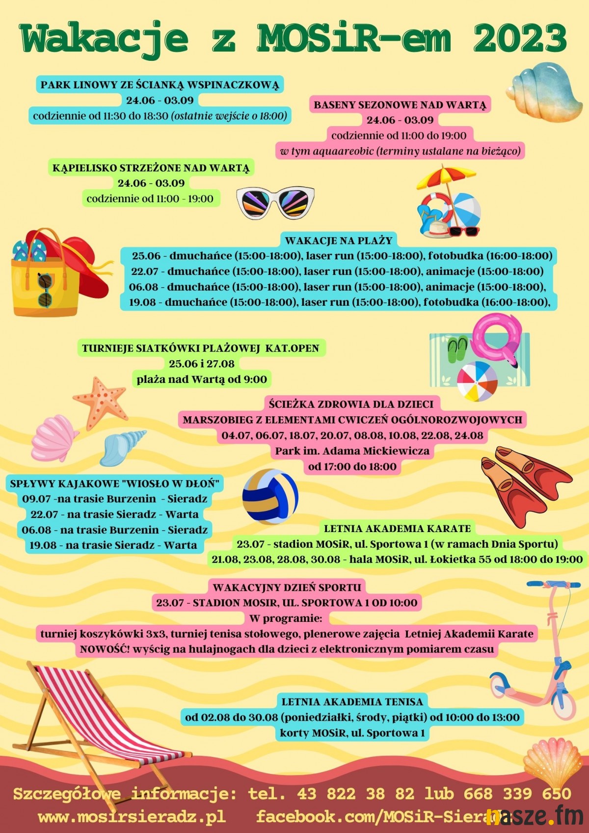 Miejski Ośrodek Sportu i Rekreacji w Sieradzu zaprasza na aktywny wakacyjny wypoczynek. Więcej w rozpisce poniżej.