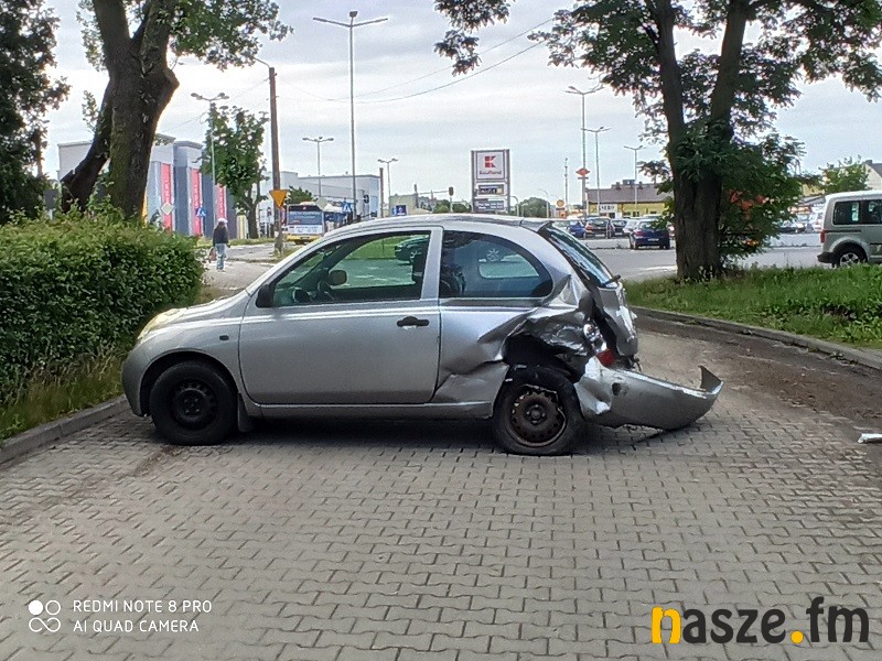 Siła uderzenia była na tyle duża, że micrę wyrzuciło na jezdnię; pojazd stanął do tego w poprzek drogi.
