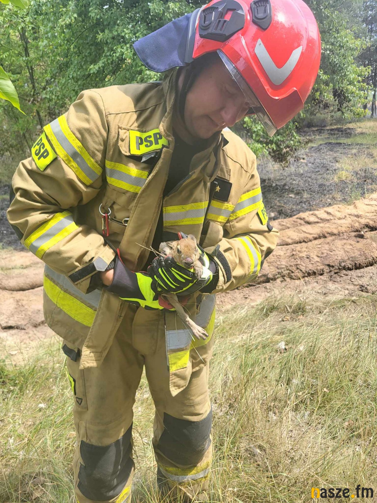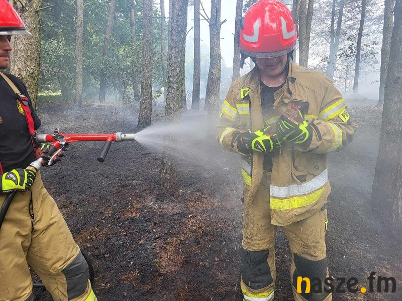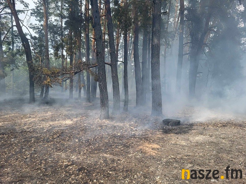 - Pożar objął pół hektara zboża na pniu, 70 arów poszycia leśnego i pół hektara nieużytku. Trwa gaszenie tego pożaru, mozolna praca z przelewaniem wodą poszycia leśnego. Dodatkowo w lesie znaleźliśmy małego zająca, który ucierpiał w ogniu. Czekamy na decyzje weterynarii, czy uda się temu zającowi pomóc. Póki co opatrują go jak mogą nasi strażacy. traktujemy go jak człowieka i zajączek otrzymuje wszelką możliwą pomoc - relacjonuje st. kpt. Marcin Zwierzak, dowódca Jednostki Ratowniczo - Gaśniczej PSP w Sieradzu.
