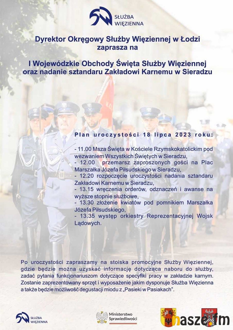 Głównym punktem tego wydarzenia będzie nadanie sztandaru Zakładowi Karnemu w Sieradzu. Funkcjonariusze będą też otrzymywali awanse służbowe i odznaczenia. Całość uświetni Orkiestra Reprezentacyjna Wojsk Lądowych.