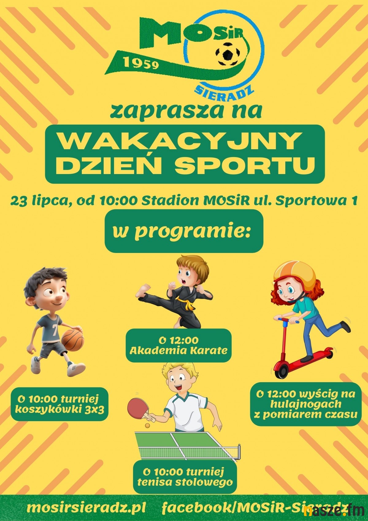W niedzielę na obiektach Miejskiego Ośrodka Sportu i Rekreacji w Sieradzu odbędzie się Wakacyjny Dzień Sportu, czyli blok imprez sportowo-rekreacyjnych dla dzieci i młodzieży. Udział jest darmowy.