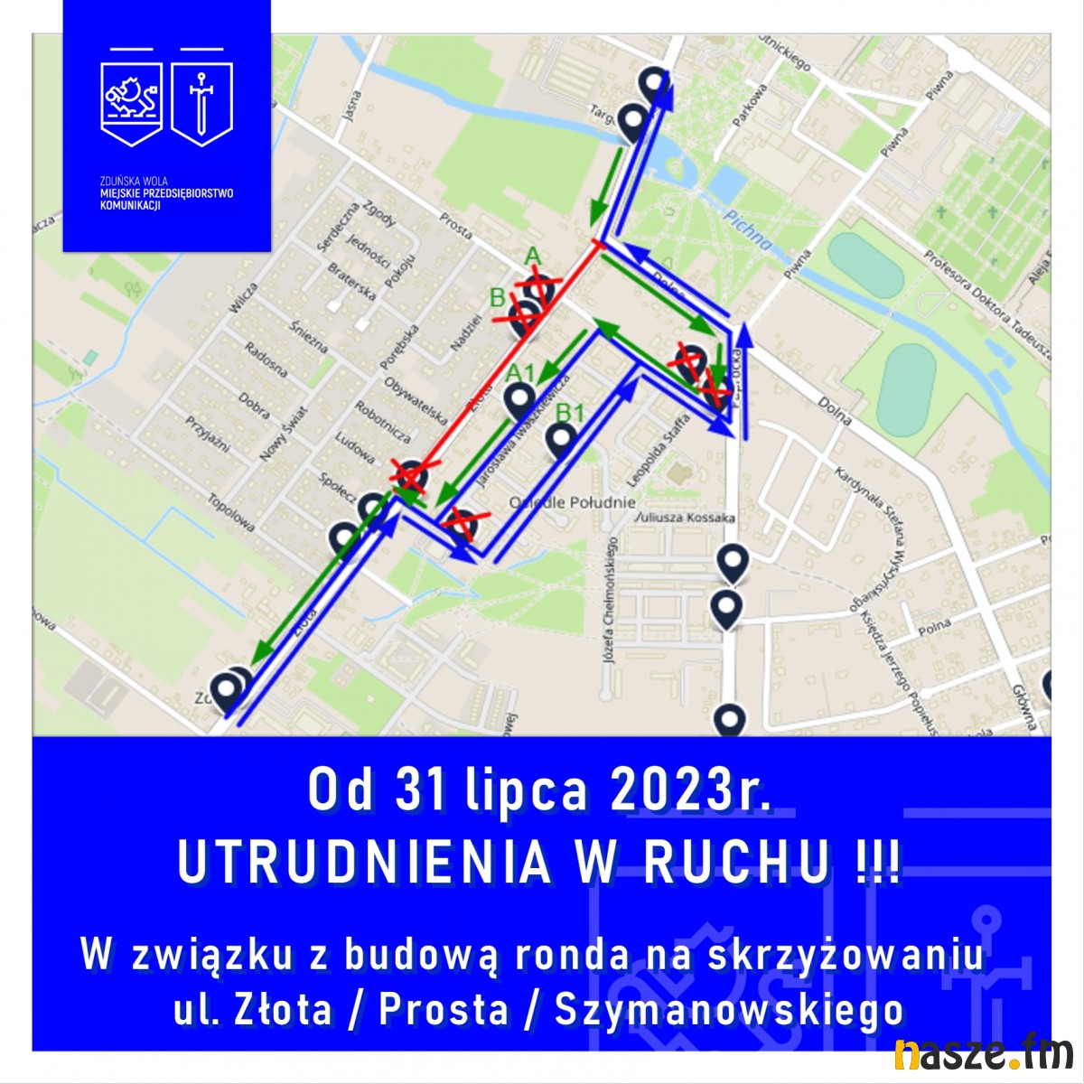 Od poniedziałku, 31 lipca, rozpoczyna się budowa ronda u zbiegu ulic Złotej oraz Karola Szymanowskiego w Zduńskiej Woli. Będą zmiany w kursowaniu autobusów MPK.