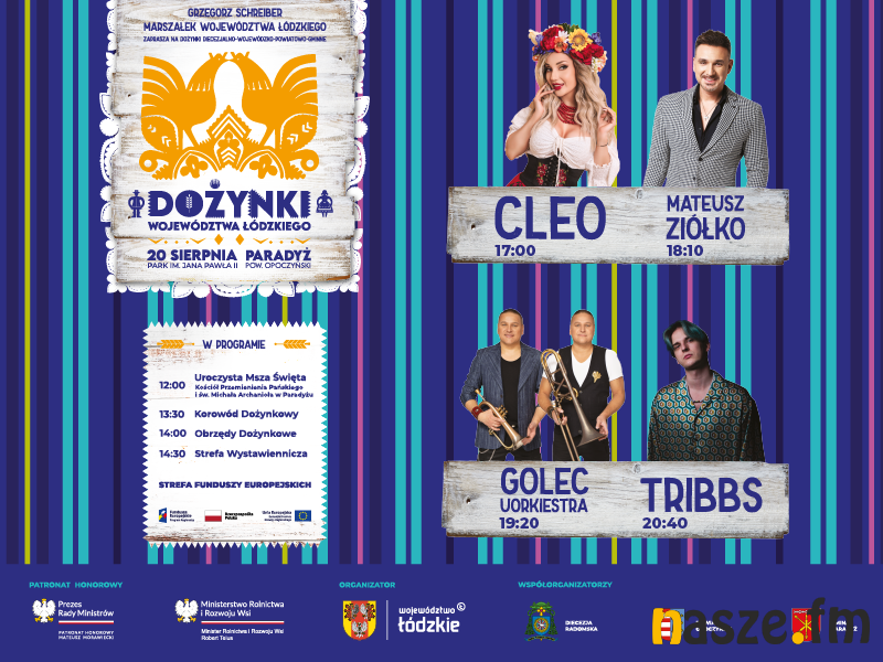 Ktoś powie: dożynki to tradycja, obrzędy, kultura ludowa. I to prawda. Ale dożynki, to przede wszystkim święto. A jak święto, to zabawa. I na taką z pewnością można liczyć na Dożynkach Województwa Łódzkiego, które są już 20 sierpnia w Paradyżu w powiecie opoczyńskim.