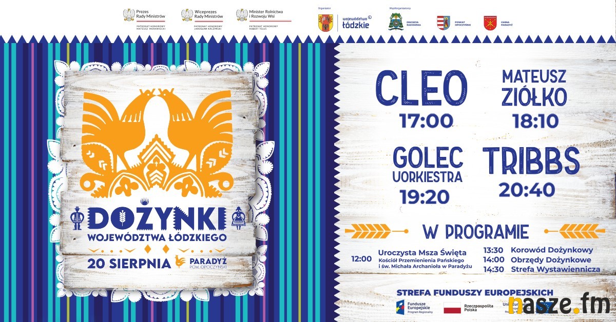 Jutro, 20 sierpnia, w Paradyżu (pow. opoczyński) odbędą się Dożynki Województwa Łódzkiego. To wyjątkowe święto jest wyrazem wdzięczności rolników za plony oraz wobec rolników - za ich ciężką pracę.