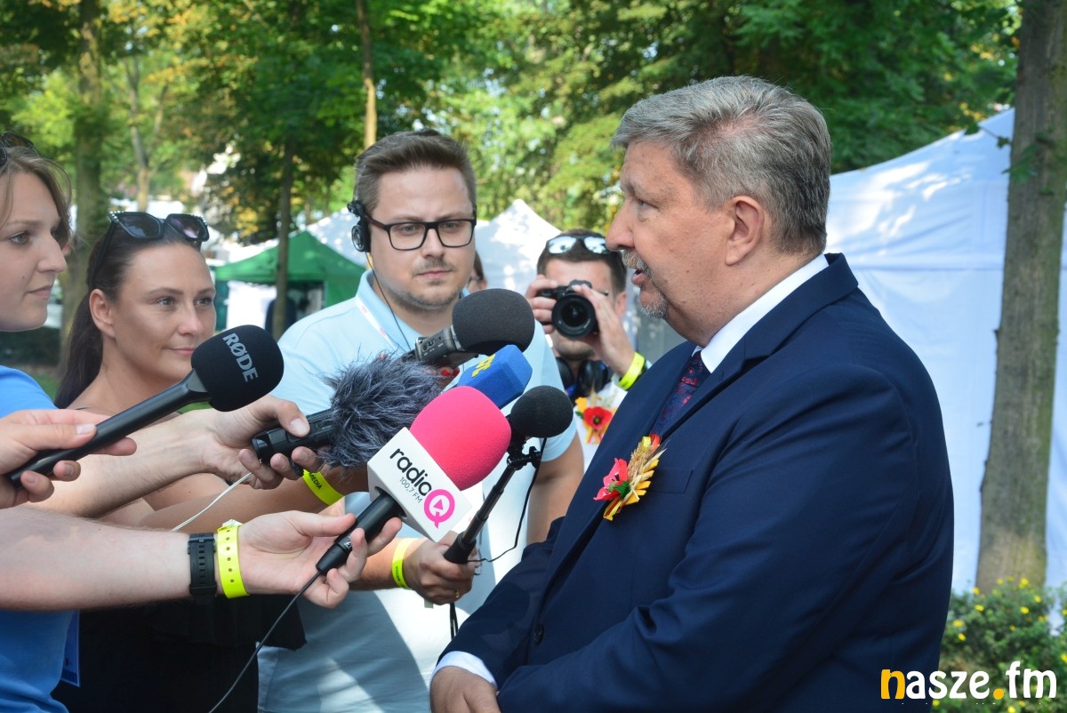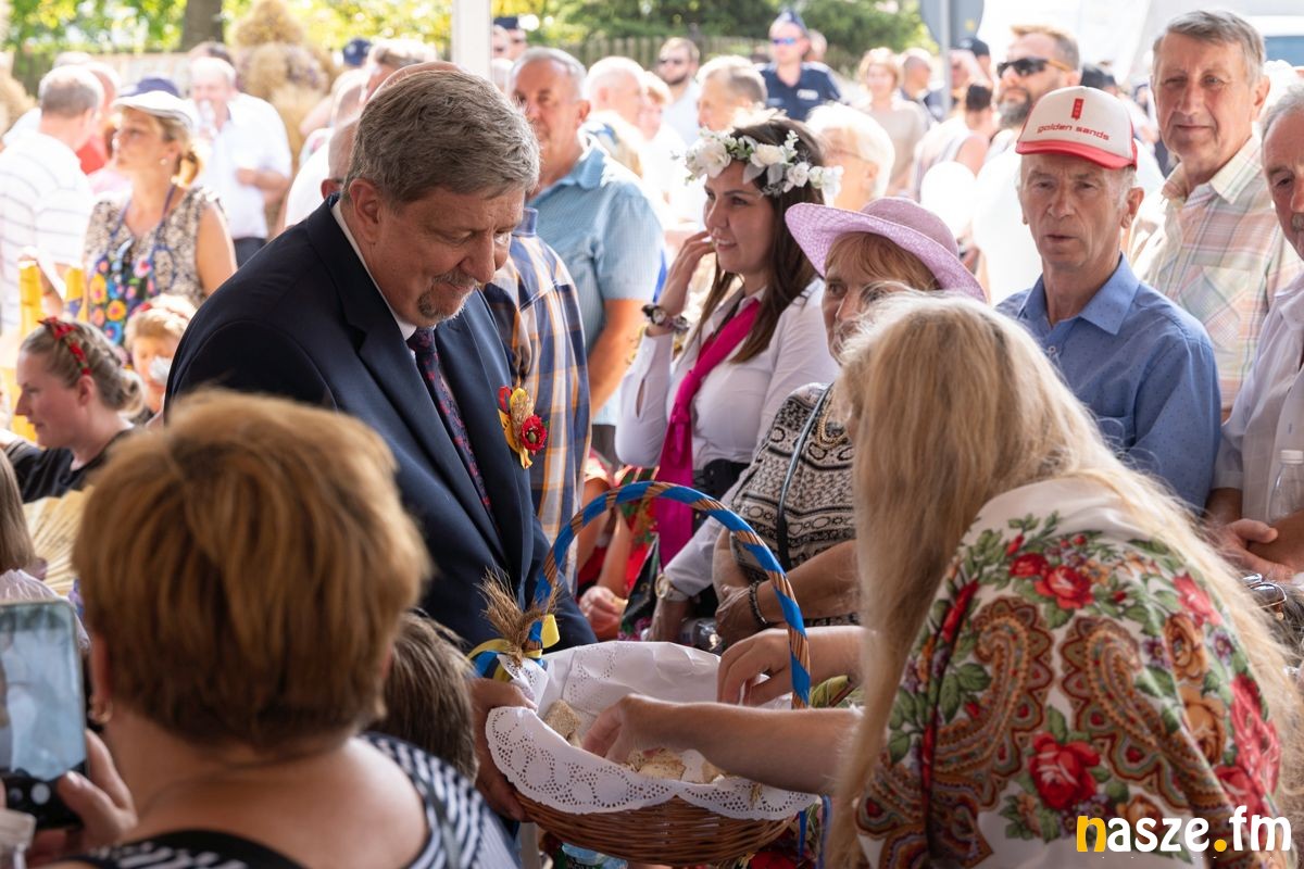 Do słów biskupa nawiązał również podczas ceremoniału dożynkowego marszałek Grzegorz Schreiber. – Dożynki to czas podziękowań, dla Was, dla rolników i wszystkich osób, które zajmują się sprawami wsi, chcą ją rozwijać. Dziękuję za Waszą pracę, za te ziarna zbóż, które dają nam ten codzienny chleb – mówił marszałek. – Dziękuję za miód, dzięki któremu możemy lepiej poczuć słodycz każdego dnia, dziękuję za soczyste owoce i warzywa, za mleko, dar zdrowia, za jajka, które są symbolem odradzającego się życia. Za pełne barw i zapachów kwiaty, które są tak różne, jak różne dni naszego życia. Dziękuję, że chcecie się z nami tym wszystkim dzielić.