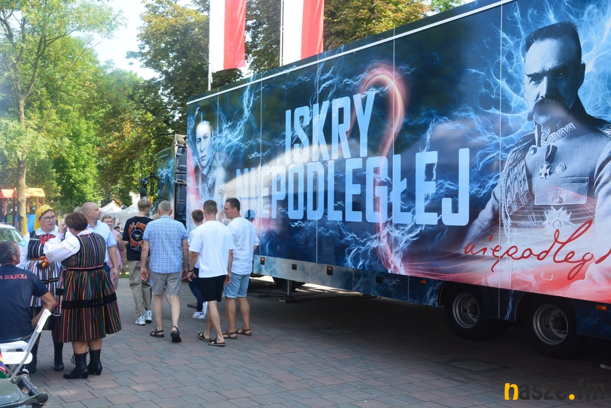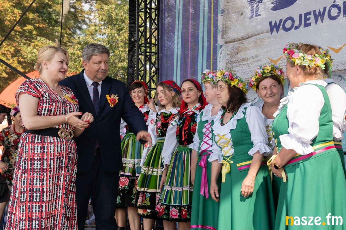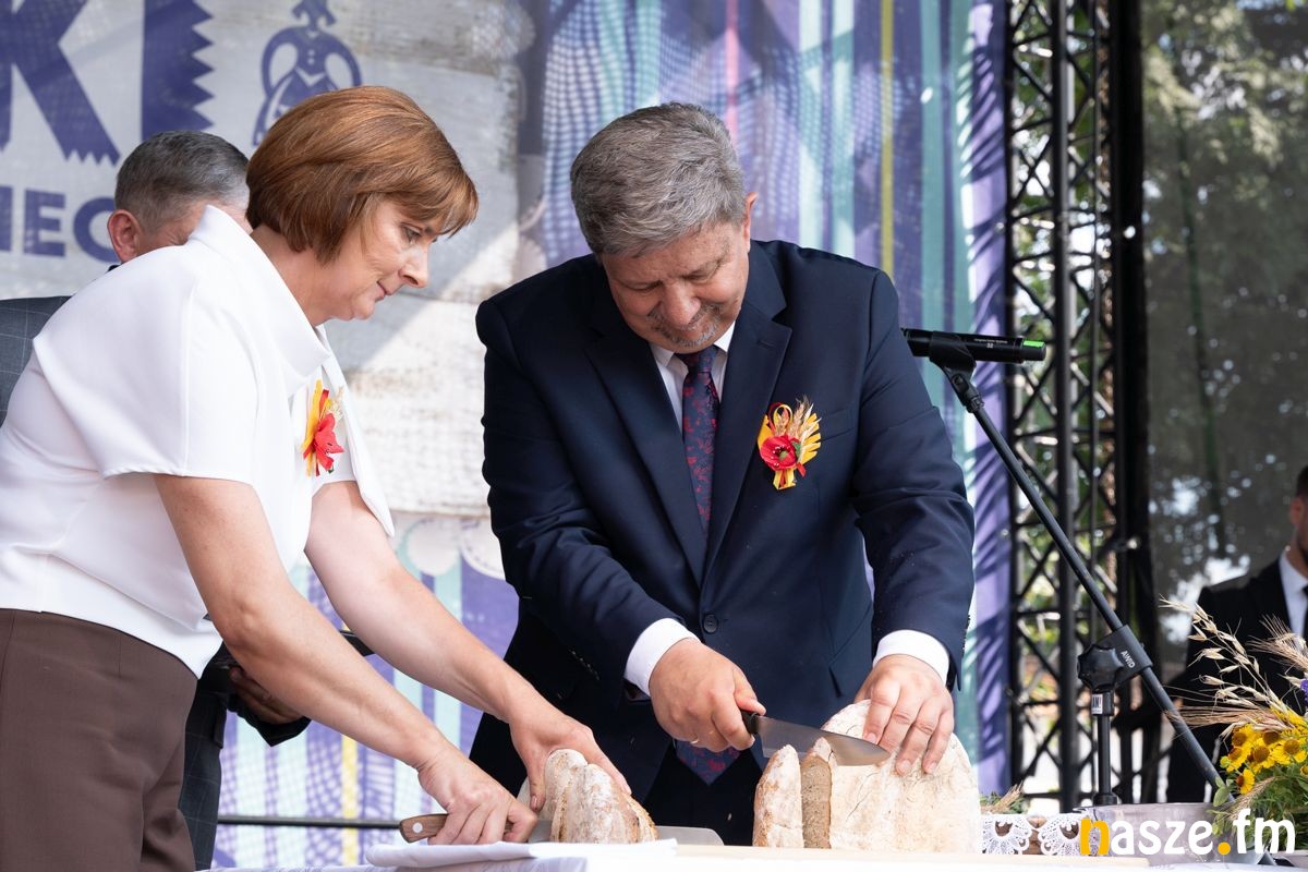 Razem z marszałkiem, dożynkowym chlebem częstowali mieszkańców starostowie dożynek: Ewa Skalska ze wsi Parczów w gm. Białaczów oraz Andrzej Stańczyk z Kalinkowa w gm. Aleksandrów.