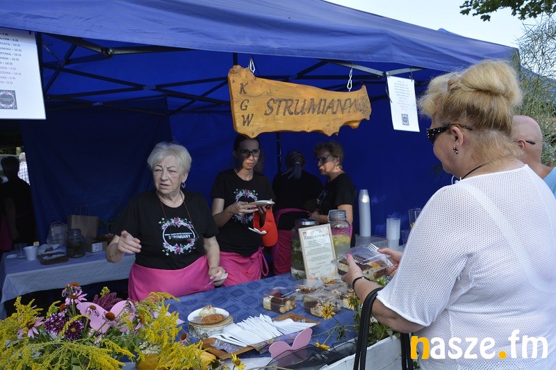 Po mszy św. w kościele w Burzeninie dożynkowy korowód przeszedł do pobliskich Strumian. Tam na początek prezentacja nowoczesnego sprzętu rolniczego, na którym pracują na co dzień burzenińscy rolnicy. Potem zgodnie z tradycją dożynkową na ręce gospodarza gminy, wójta Jarosława Janiaka starostowie dożynek, czyli Sylwia i Dominik Grzelakowie złożyli symboliczny bochen chleba. Został on potem pokrojony i gospodarze dożynek częstowali nim uczestników święta plonów. W Strumianach nie zabrakło też dożynkowych przyśpiewek, czy wieńców oraz koszy przygotowanych przez poszczególne sołectwa. Ten umieszczony na estradzie przygotowały sołectwa Antonin i Strumiany.