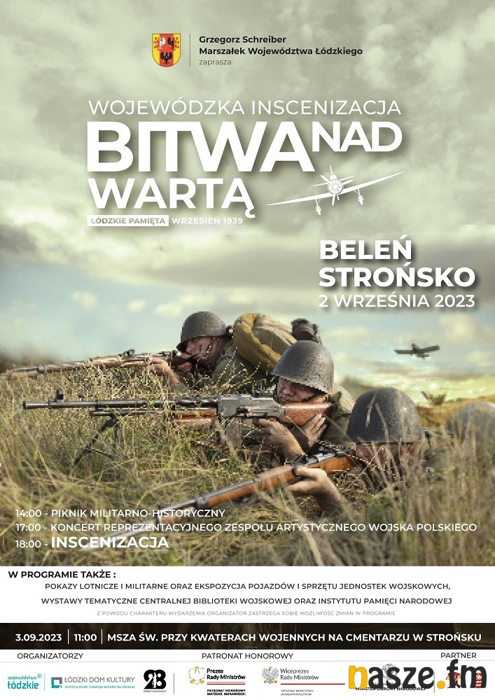 W pierwszych dniach września 1939 roku polska armia stoczyła nad Wartą krwawą bitwę z hitlerowskim najeźdźcą. Straty były ogromne, obrońcy, mimo ogromnej determinacji, przegrali, śmierć poniosło też wielu cywili. 84 lata później, kolejny rok z rzędu, na polach między Beleniem a Strońskiem, odbędzie się wielka, historyczna inscenizacja tych wydarzeń. Mieszkańcy Łódzkiego ponownie oddadzą hołd bohaterstwu walczących o wolną Polskę.