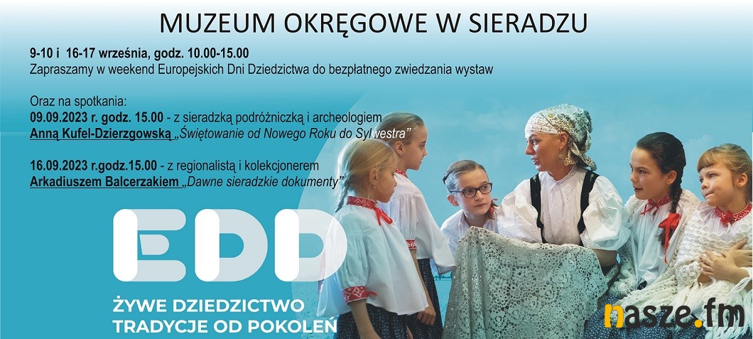 Tegoroczne EDD to okazja do bezpłatnego zwiedzania wystaw i wzięcia udziału w interesujących spotkaniach. Sieradzkie muzeum zaprasza w sobotę i niedzielę od 10:00 do 15:00. Hasłem tegorocznej edycji jest "Żywe dziedzictwo - tradycje od pokoleń".