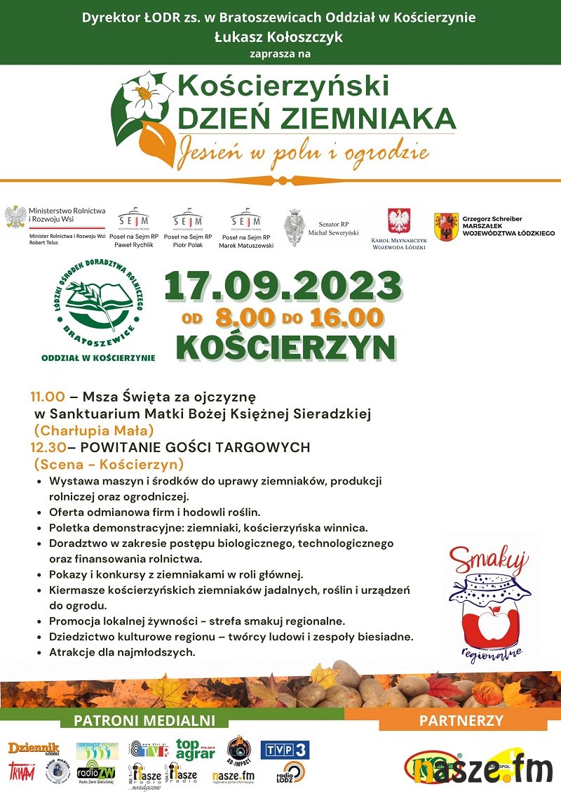 Wydarzenie zaplanowano na najbliższą niedzielę (17.09.br.) w godz. 8-16. Dodatkowo o godz. 11 w Sanktuarium Matki Bożej Księżnej Sieradzkiej będzie msza św. za Ojczyznę. W Kościerzynie oficjalne otwarcie targów o godz. 12:30.