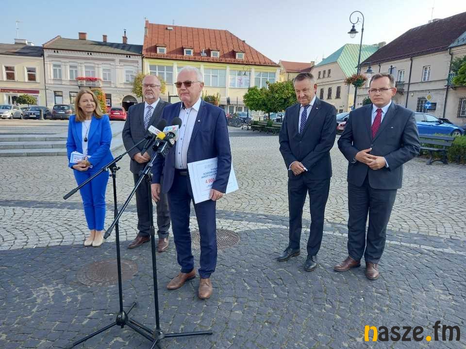 Dziś, 18 września, na Rynku w Sieradzu odbyła się konferencja prasowa posłów Prawa i Sprawiedliwości w sprawie kolejnych pieniędzy z Polskiego Ładu. Symboliczne czeki odbierali przedstawiciele powiatów sieradzkiego i zduńskowolskiego oraz miast i gmin z tej części naszego regionu.
