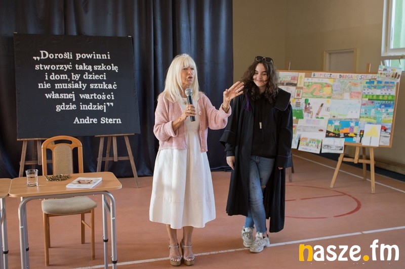 Został też poruszony bardzo ważny temat budowania roli szkoły i rodziny we współczesnym trudnym świecie. Pani sędzia podkreślała niejednokrotnie, że zależy jej na tworzeniu świadomych i bezpiecznych rodzin w Polsce. Zwróciła uwagę na fakt, jak wielką rolę odgrywa współpraca szkoły z rodzicami oraz innymi instytucjami, np. sądami w wychowywaniu dzieci i młodzieży. Opowiedziała też o marzeniach dzieci dotyczących ich rodziców.