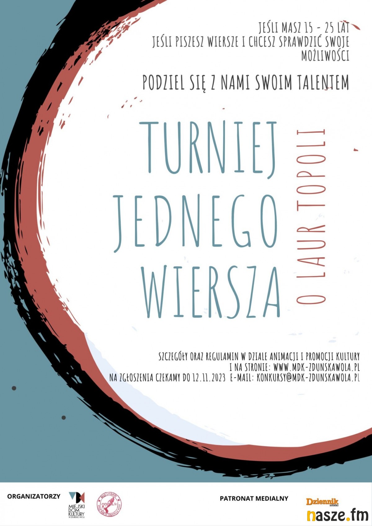 Organizatorzy zachęcają do nadsyłania prac na Turniej Jednego Wiersza "O Laur Topoli". Celem Turnieju jest wyłonienie nowych talentów poetyckich.