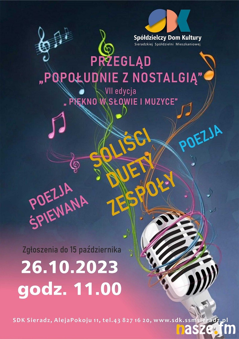 Na "Popołudnie z nostalgią" zaprasza Spółdzielczy Dom Kultury Sieradzkiej Spółdzielni Mieszkaniowej: