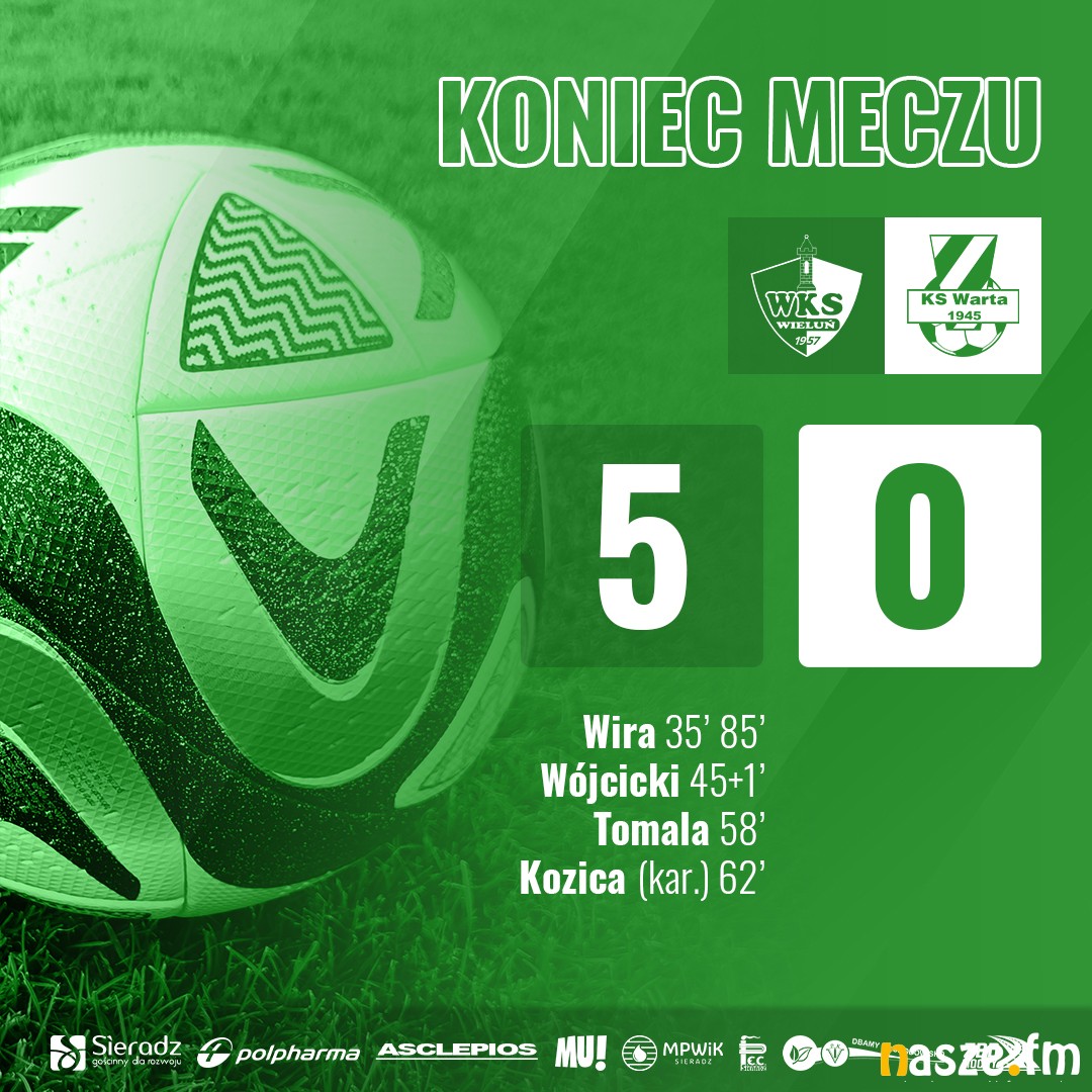 WKS Wieluń – Warta II Sieradz 5:0 (Kamil Wira: x2, Kamil Wójcicki, Dawid Tomala, Jakub Kozica)