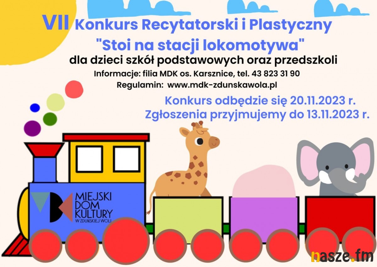 To będzie już 7. edycja Konkursu Recytatorskiego i Plastycznego "Stoi na stacji lokomotywa", do udziału w którym zaprasza filia Miejskiego Domu Kultury w Karsznicach.