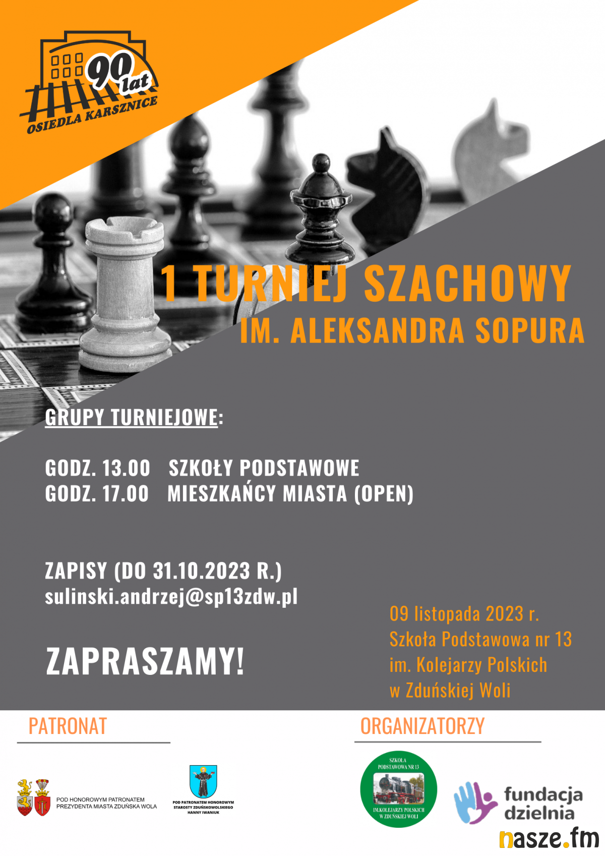 Zawody mają uczcić 90 lat osiedla Karsznice. Zmagania odbędą się w Szkole Podstawowej nr 13. O 13:00 zagrają uczniowie szkół podstawowych, a cztery godziny później zmierzą się pozostali chętni.