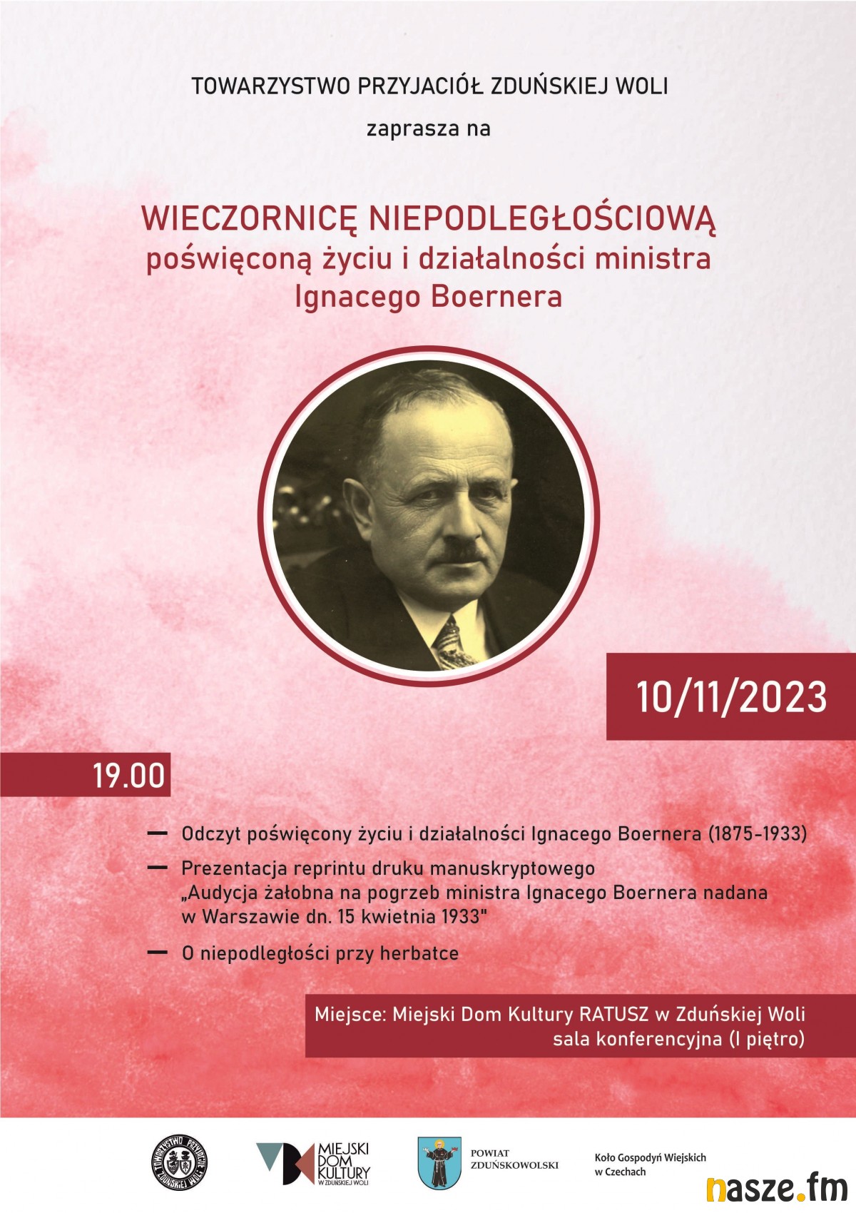 Towarzystwo Przyjaciół Zduńskiej Woli zaprasza w najbliższy piątek, 10 listopada, na niepodległościową wieczornicę dedykowaną pamięci wybitnego zduńskowolanina Ignacego Boernera.