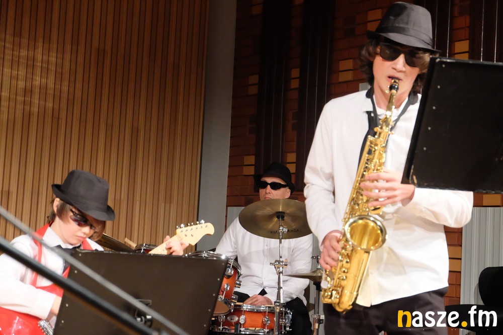 Jak się okazuje Sieradzki Festiwal Muzykujących Rodzin nie integruje wyłącznie poszczególnych członków rodziny, ale i całe rody. Na scenie w dwóch utworach zaprezentował się zespół wielorodzinny. W rodzinie Górnych zagrali: Paweł - tata na perkusji, Przemysław - syn - na saksofonie altowym, Bartosz - syn - na gitarze, Maksym Bartczak - kuzyn - na gitarze basowej i fortepianie. Rodzinę Fraszczyńskich reprezentowało rodzeństwo - Klaudia - klarnecistka i Kamil - trębacz. Wiele godzin spędzonych na wspólnych próbach zaowocowało przygotowaniem dwóch utworów. Zabrzmiał temat z filmu o Jamsie Bondzie oraz Java Allena Toussainta. Występ dopracowany był w każdym calu. Wykonawcy mieli stosowne, jednolite stroje. Wielkie brawa.