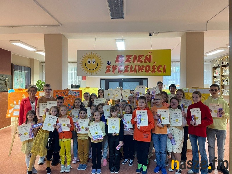 - Wszyscy uczniowie naszej szkoły wzięli udział w obchodach Dnia Życzliwości. Tego dnia zarówno uczniowie, jak i nauczyciele przybyli do szkoły ubrani w jasne, radosne stroje, emanując pozytywnym nastawieniem. Każdego wchodzącego witano słodyczami i uprzejmym słowem. Delegacje z poszczególnych klas składały serdeczne życzenia zarówno uczniom, jak i nauczycielom. Pani Dyrektor, Helena Rajewska, wręczyła dyplomy oraz upominki najbardziej życzliwym uczniom, którzy zostali wybrani w trakcie klasowych plebiscytów. Dodatkowo każda klasa robiła miły uczynek dla innej klasy. Młodsi uczniowie przygotowali Klasowe Księgi Życzliwości a starsi życzenia dla świata- relacjonują uczniowie i nauczyciele