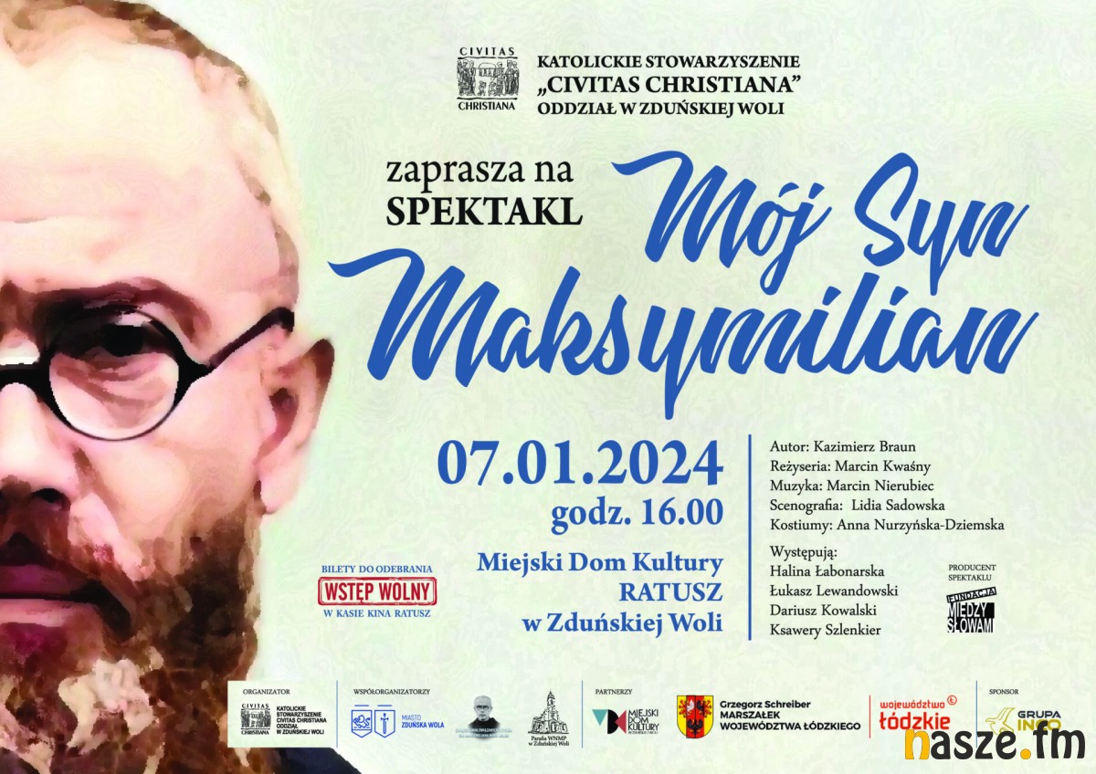 Urodziny św. Maksymiliana zostaną także upamiętnione spektaklem "Mój Syn, Maksymilian", jaki zostanie wystawiony 7 stycznia o godz. 16:00 w sali widowiskowej Miejskiego Domu Kultury Ratusz w Zduńskiej Woli.