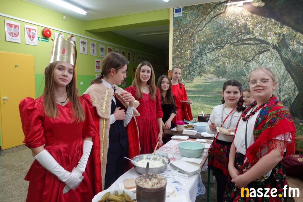 - Dzieci przemierzały korytarze szkolne, oglądając plakaty, które przygotowali na konkursy: „Średniowieczni rycerze&rdquo, „Średniowieczne zamki&rdquo, „Etos rycerski we współczesnej szkole&rdquo, „Rycerze XXI wieku”. Dzieci i nastolatki wiedzą, że współcześni rycerze muszą walczyć o dobro ludzi, zwierząt, pomagać innym i zwalczać hejterów. Dla uczniów przygotowano wiele atrakcji dla „ducha i ciała”. Dzieci brały udział w zawodach sportowych (sztafecie, przeciąganiu liny). W czasie przerw czekały na nich smaczne regionalne smakołyki: smalczyk, gziczka, ziemniaczki, chleb staropolski, ogórki kiszone. Koordynatorką projektu dnia kultury ludowej była Pani Ewa Waga, a nad całokształtem imprezy czuwała nasza nauczycielka historii - Mirosława Świniarska. Dzieci w strojach średniowiecznych miały okazję zaprezentować się przed społecznością szkolną na podsumowaniu uroczystości- relacjonują nauczyciele