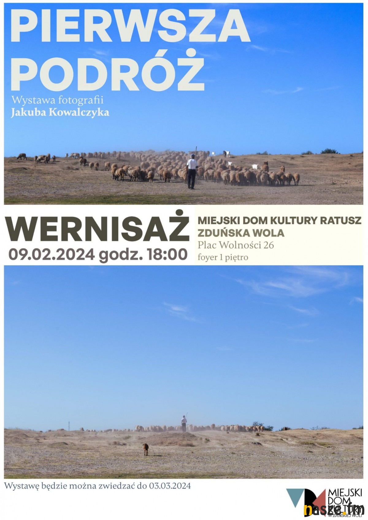 Wernisaż wystawy fotografii Jakuba Kowalczyka pt. "Pierwsza podróż" odbędzie się 9 lutego 2024 roku o godzinie 18.00 w foyer MDK Ratusz na I piętrze.