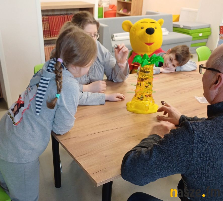 Niemałym zainteresowaniem cieszyły się również spotkania, na których można było zagrać w gry planszowe i interaktywne. Dobrej zabawie i integracji między uczestnikami, sprzyjały animacje z chustą Klanza oraz stały punkt w bibliotece – kalambury z literatury. Tym sposobem w formię zabawy sprawdziliśmy wiedzę dzieci z zakresu bajek i książek.