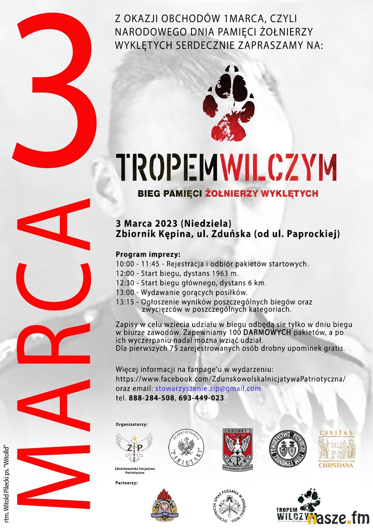 3 marca nad zbiornikiem Kępina w Zduńskiej Woli odbędzie się kolejna edycja biegu Pamięci Żołnierzy Wyklętych „Tropem Wilczym”. Start jest bezpłatny, a zapisy przyjmowane będą w dniu zawodów.