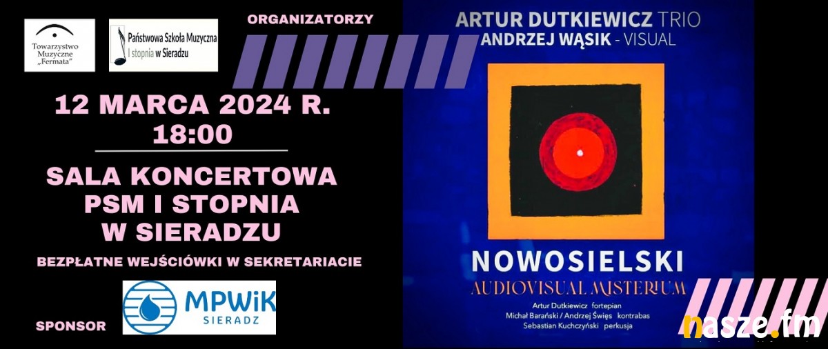 To wydarzenie zaplanowano na wtorek12 marca na godz. 18:00. Trio Artura Dutkiewicza jest już znane sieradzkim melomanom. Dla pianisty inspiracją do przedstawienia utworów o charakterze kontemplacyjnym, skomponowanych na fortepian, kontrabas i perkusję, łączących elementy muzyki improwizowanej, współczesnej, klasycznej i jazzu stało się malarstwo Nowosielskiego. Powstał projekt "Nowosielski Audiovisual Misterium".