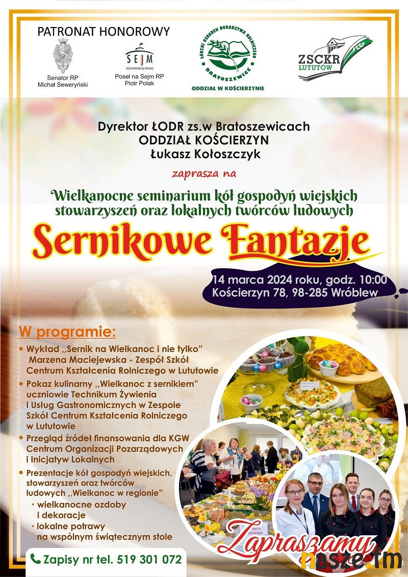 - pokaz kulinarny „Wielkanoc z sernikiem” – uczniowie Technikum żywienia i Usług Gastronomicznych w Zespole Szkół Centrum Kształcenia Rolniczego w Lututowie