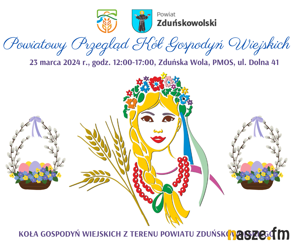 W trakcie jarmarku odbędzie się też Powiatowy Przegląd Kół Gospodyń Wiejskich z terenu Powiatu Zduńskowolskiego. Jego motywem przewodnim będzie oczywiście Wielkanoc - tradycje, zwyczaje, potrawy.