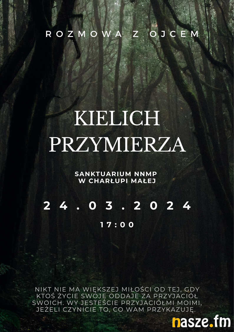 Wspólnota młodzieżowa "Ci Młodzi" z Charłupi Małej i parafianie z Sanktuarium Matki Bożej Księżnej Sieradzkiej organizują kolejne wydarzenie kulturalne, spektakl pt. "Kielich Przymierza - Rozmowa z Ojcem". Zostanie wystawiony w niedzielę 24 marca o godzinie 17.00 w Sanktuarium w Charłupi Małej.