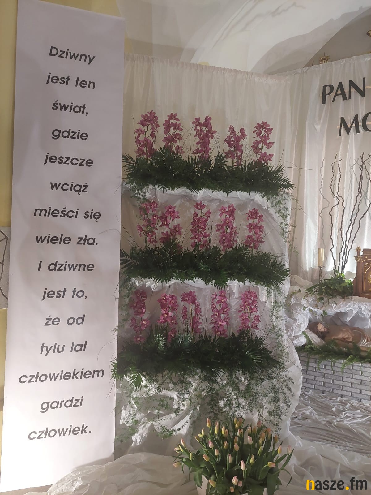 W tym roku motywem przewodnim wystroju Grobu Pańskiego w Sanktuarium Matki Bożej Księżnej Sieradzkiej w Charłupi Małej jest współczesny problem hejtu i obrażania drugiego człowieka.
