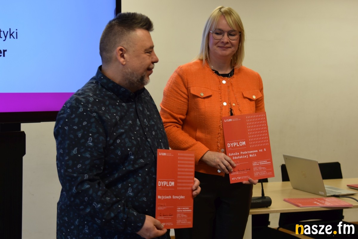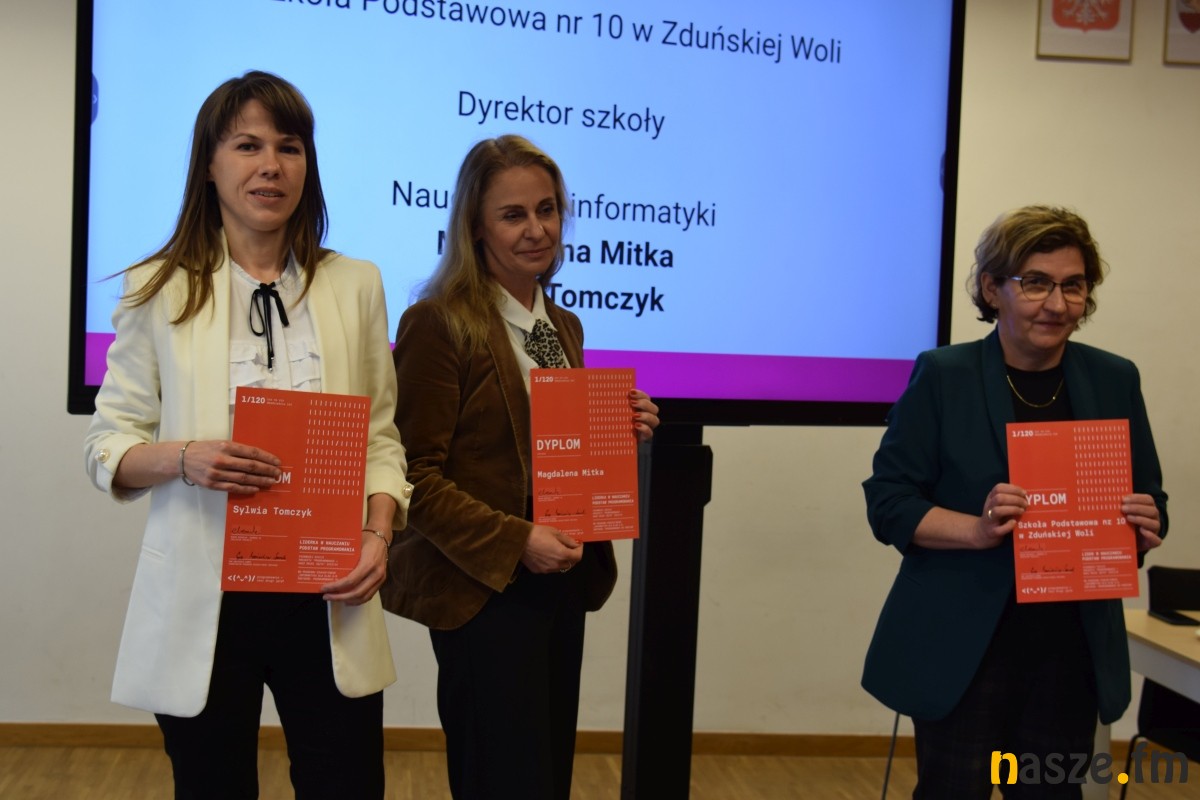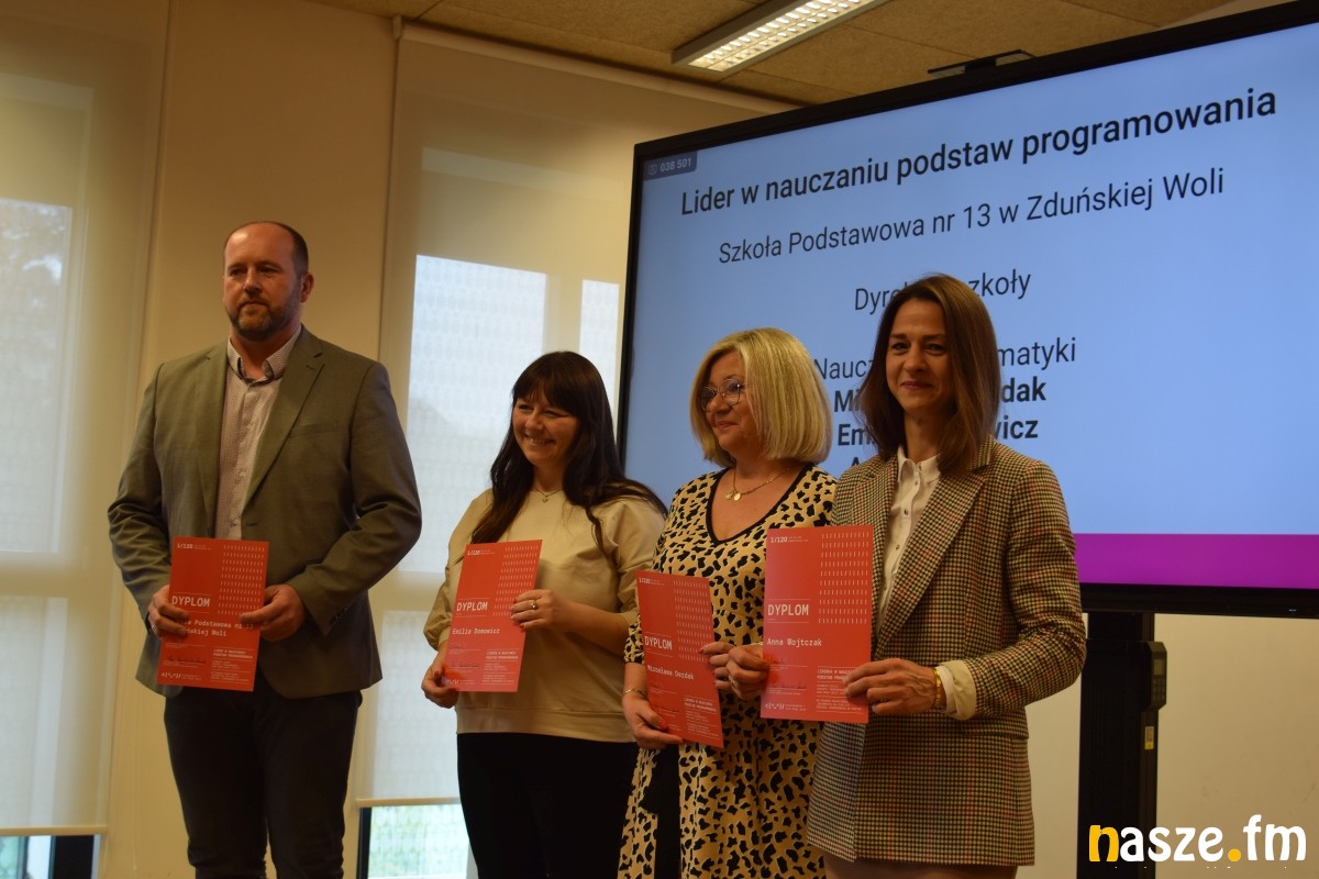 Podczas spotkania w Zduńskiej Woli na podsumowanie pierwszego roku pilotażu wręczono dyplomy nauczycielom zaangażowanym w projekt. Otrzymali tytuł „Lider nauczania podstaw programowania”.