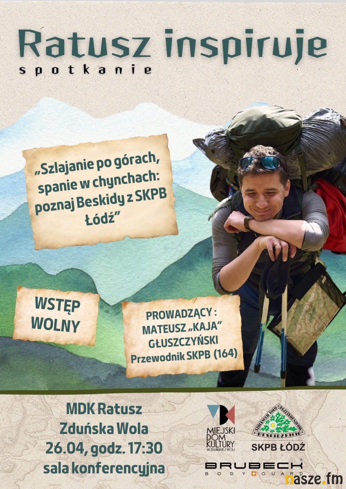 Miejski Dom Kultury Ratusz w Zduńskiej Woli zapraszam na kolejne spotkanie w ramach cyklu "Ratusz inspiruje". Tym razem będzie to coś dla miłośników górskich wędrówek, o których opowie Mateusz Głuszczyński.